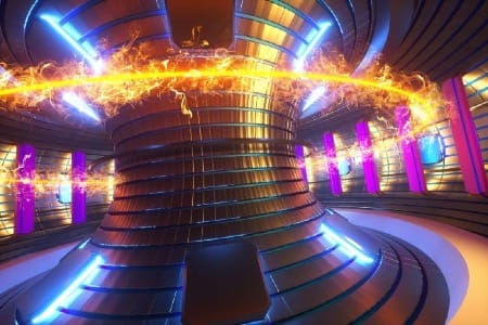 A Tokamak is a doughnut-shaped vacuum surrounded by magnetic coils, a device designed to generate energy through nuclear fusion — the same process that powers the sun. It works by heating hydrogen gas into a super-hot plasma and using strong magnetic fields to confine and control it, preventing it from touching the reactor walls. If the plasma stays stable long enough at high temperatures and pressure, the hydrogen atoms can fuse, releasing large amounts of clean energy. Tokamaks are one of the most promising approaches to achieving practical, sustainable fusion power.